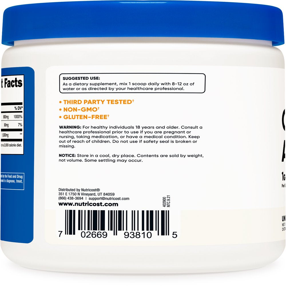 Nutricost's high quality Calcium Ascorbate Powder is a great Vitamin C and Calcium supplement. Calcium Ascorbate is an additional form of vitamin C. This product is non-GMO, gluten free, soy free, and made in a GMP compliant facility. Only What You Need, Nothing You Don't! We've simplified our entire philosophy down to that single concept. This motto is what drives us to find the highest quality sources of the purest ingredients for each supplement we offer. From single ingredients to our simple formulations for targeted effects, each of our supplements stays clear and simple with what they provide.