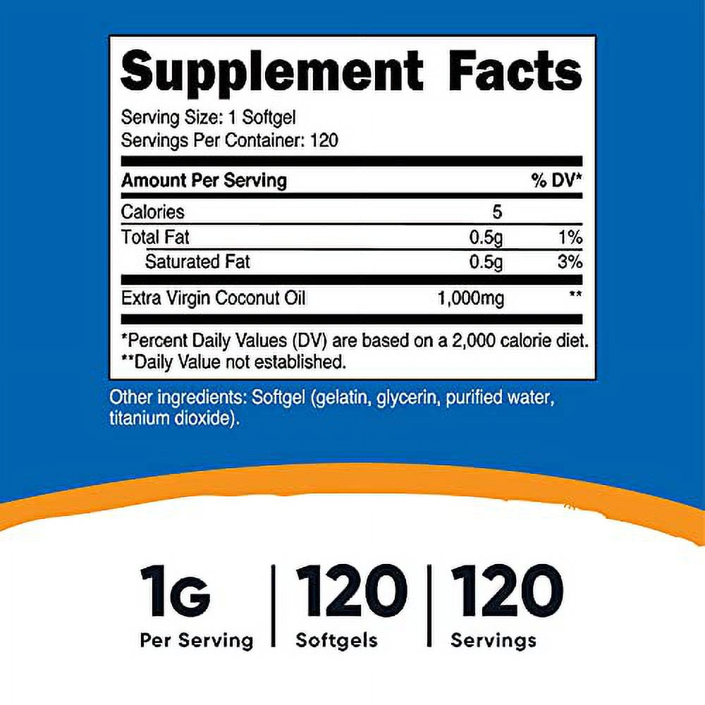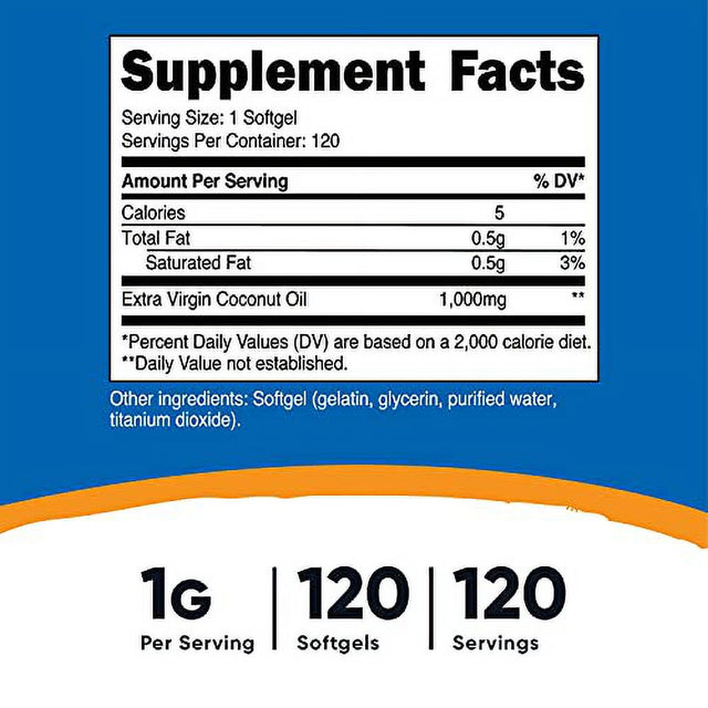 Nutricost Coconut Oil Softgels (1000Mg) 120 Softgels - Extra Virgin Coconut Oil - Gluten Free and Non-Gmo