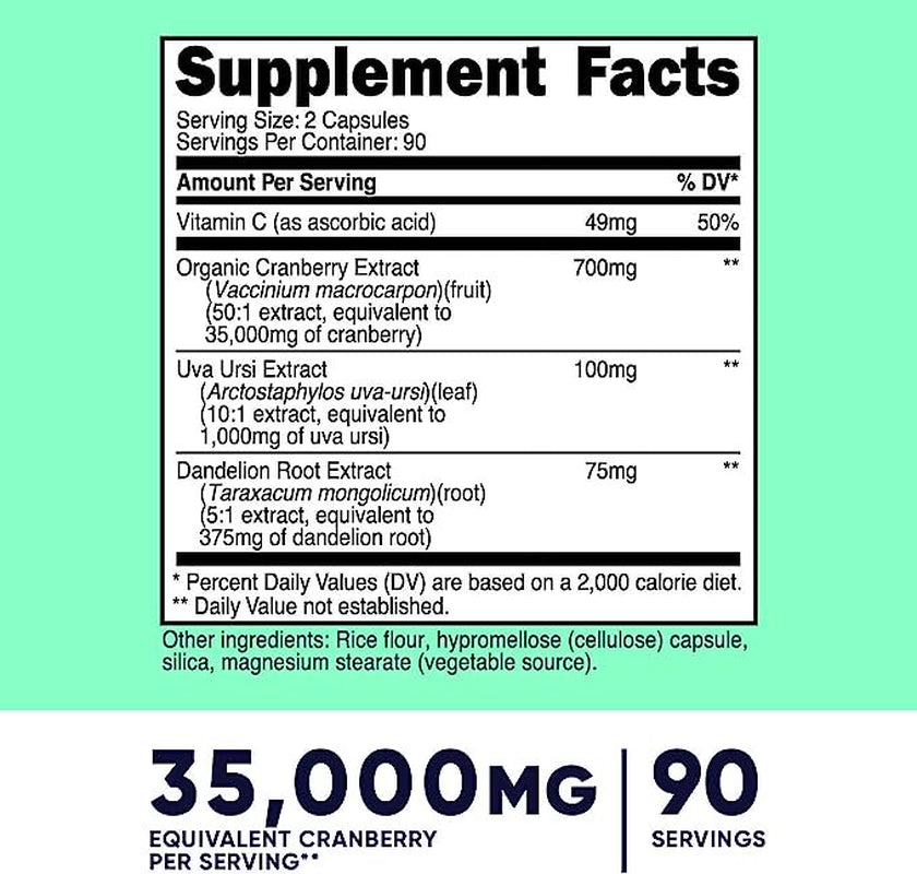 Nutricost's Cranberry Extract for Women contains 35,000mg equivalent organic cranberry, vitamin c, uva ursi and dandelion root extract. Each bottle contains 180 capsules for 90 servings of cranberry extract (2 capsules per serving). Nutricost, located and headquartered in the USA, only uses the best ingredients to ensure maximum quality and to help you feel your best! By keeping our supplement recipes simple and clean, you get the best experience possible with Nutricost. Our supplements are manufactured in a GMP-compliant and FDA-registered facility; and each batch of every product is tested by independent, ISO-accredited laboratories.