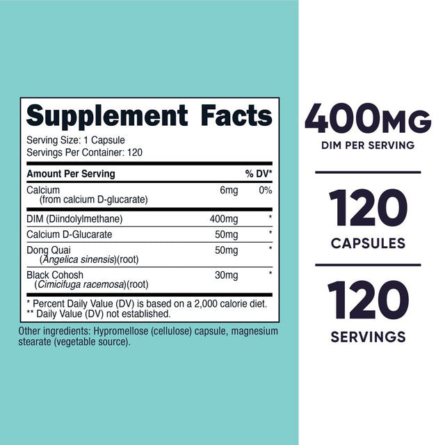Nutricost Diindolylmethane DIM supplement for women. Each capsule has 400 mg of DIM, and each bottle has 120 capsules. Includes Dong Quai, Calcium & Black Cohosh. This product is vegan, non-GMO and gluten free. Nutricost, located and headquartered in the USA, only uses the best ingredients for maximum quality and to help you feel your best! By keeping our supplement recipes simple and clean, you get the best experience possible with Nutricost. Our supplements are manufactured in a GMP-compliant and FDA-registered facility; and each batch of every product is tested by independent, ISO-accredited laboratories.