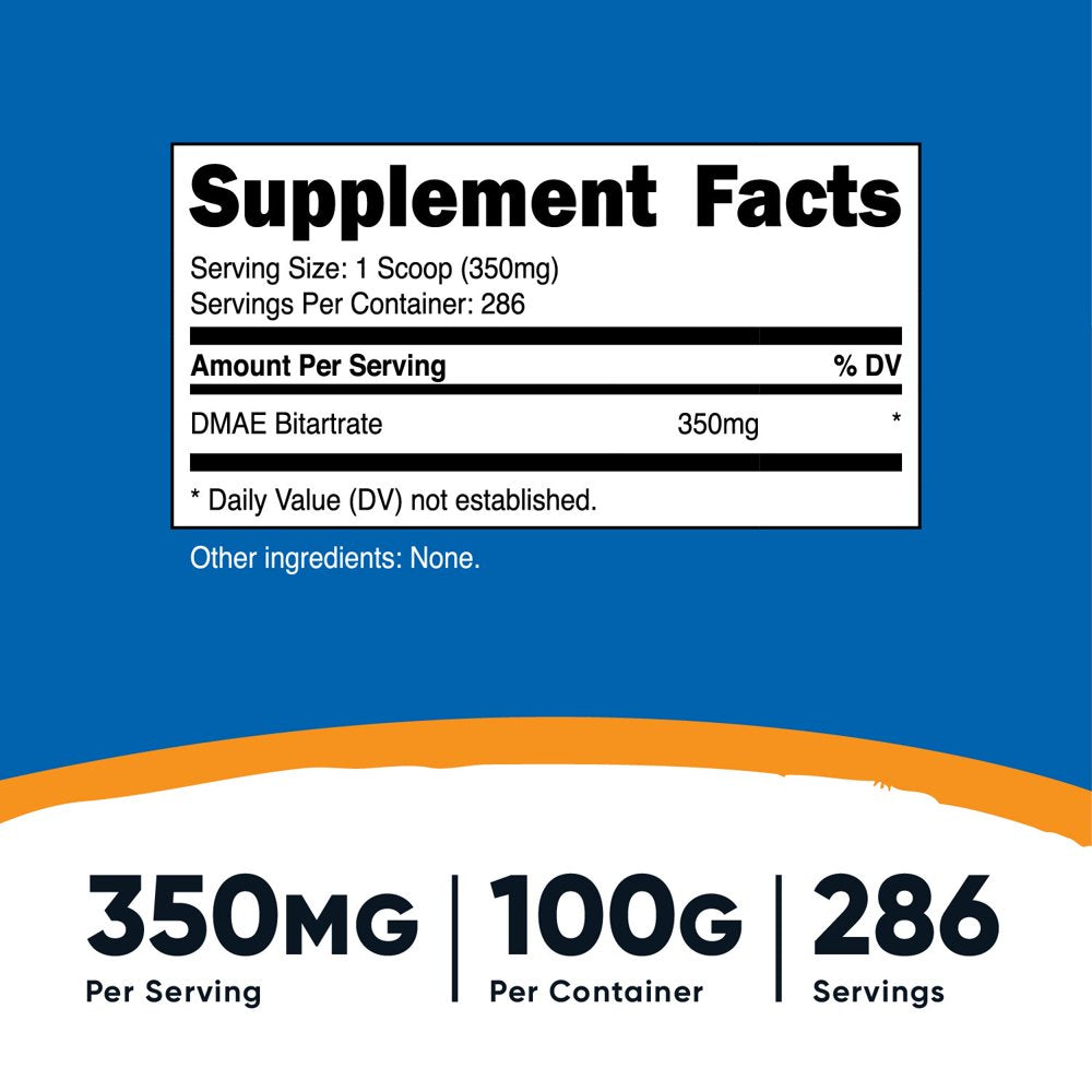 - 350mg of DMAE-Bitartrate Per Serving (286 Servings)