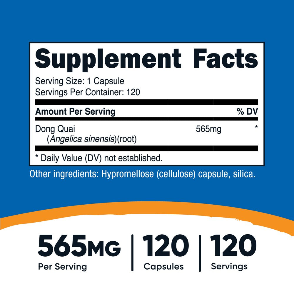 - 565mg of Dong Quai Per Capsule (120 Servings)