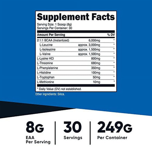 Nutricost EAA Powder 30 Servings (Unflavored) - Essential Amino Acids - Non-Gmo, Gluten Free, Vegetarian Friendly