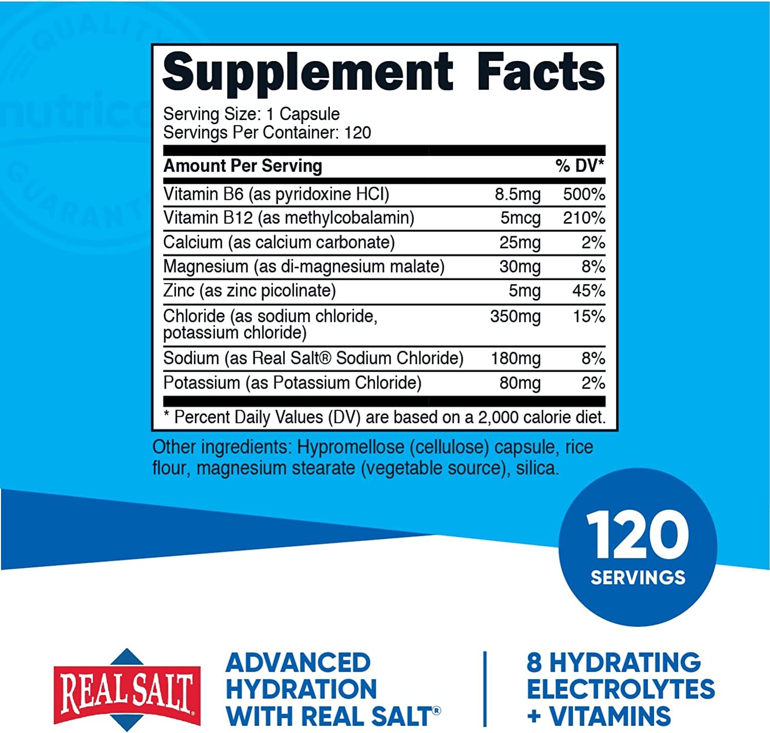 Nutricost Electrolyte Complex (Advanced Hydration with Real Salt®) 120 Capsules - 8 Hydrating Electrolytes & Vitamins, Gluten Free, Non-Gmo, Vegetarian