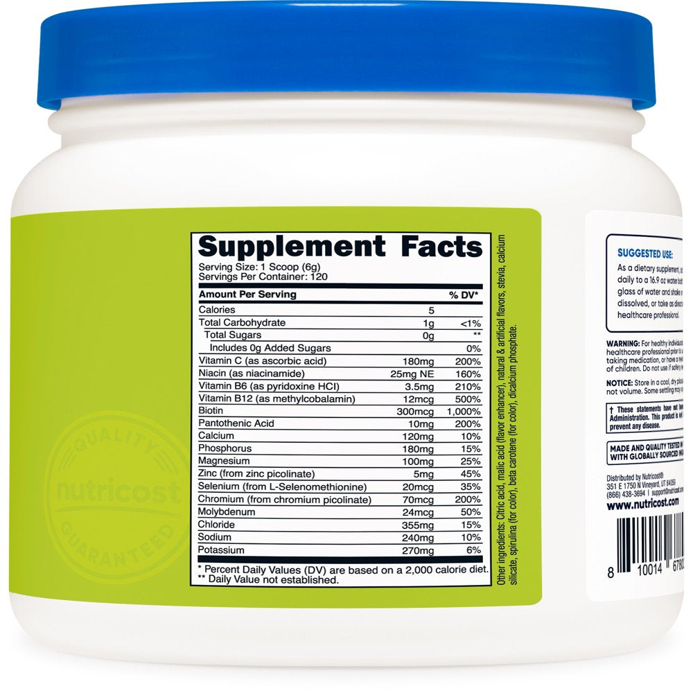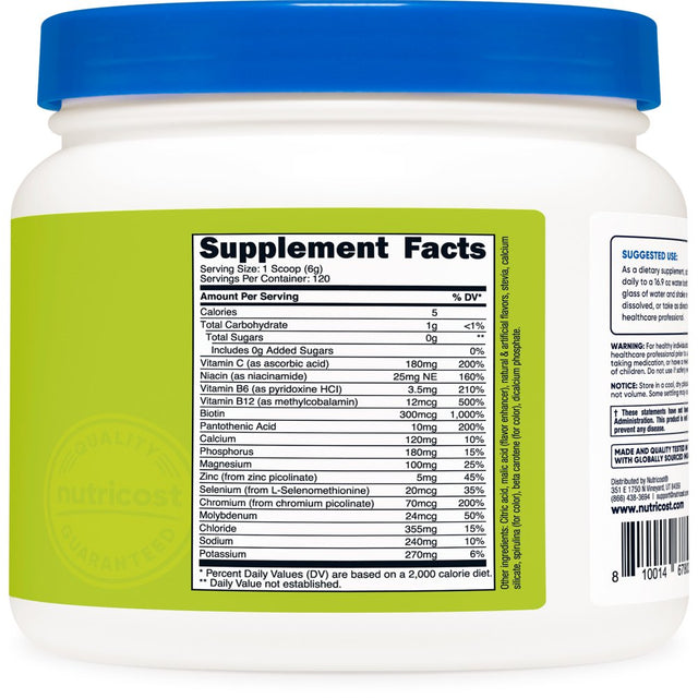 Nutricost Electrolytes Advanced Hydration Powder has 120 Servings of Advanced Hydration powder per bottle. It has zero sugar (stevia sweetened), and contains 16 vitamins and minerals. Nutricost, located and headquartered in the USA, only uses the best ingredients for maximum quality and to help you feel your best! By keeping our supplement recipes simple and clean, you get the best experience possible with Nutricost. Our supplements are manufactured in a GMP-compliant and FDA-registered facility; and each batch of every product is tested by independent, ISO-accredited laboratories.