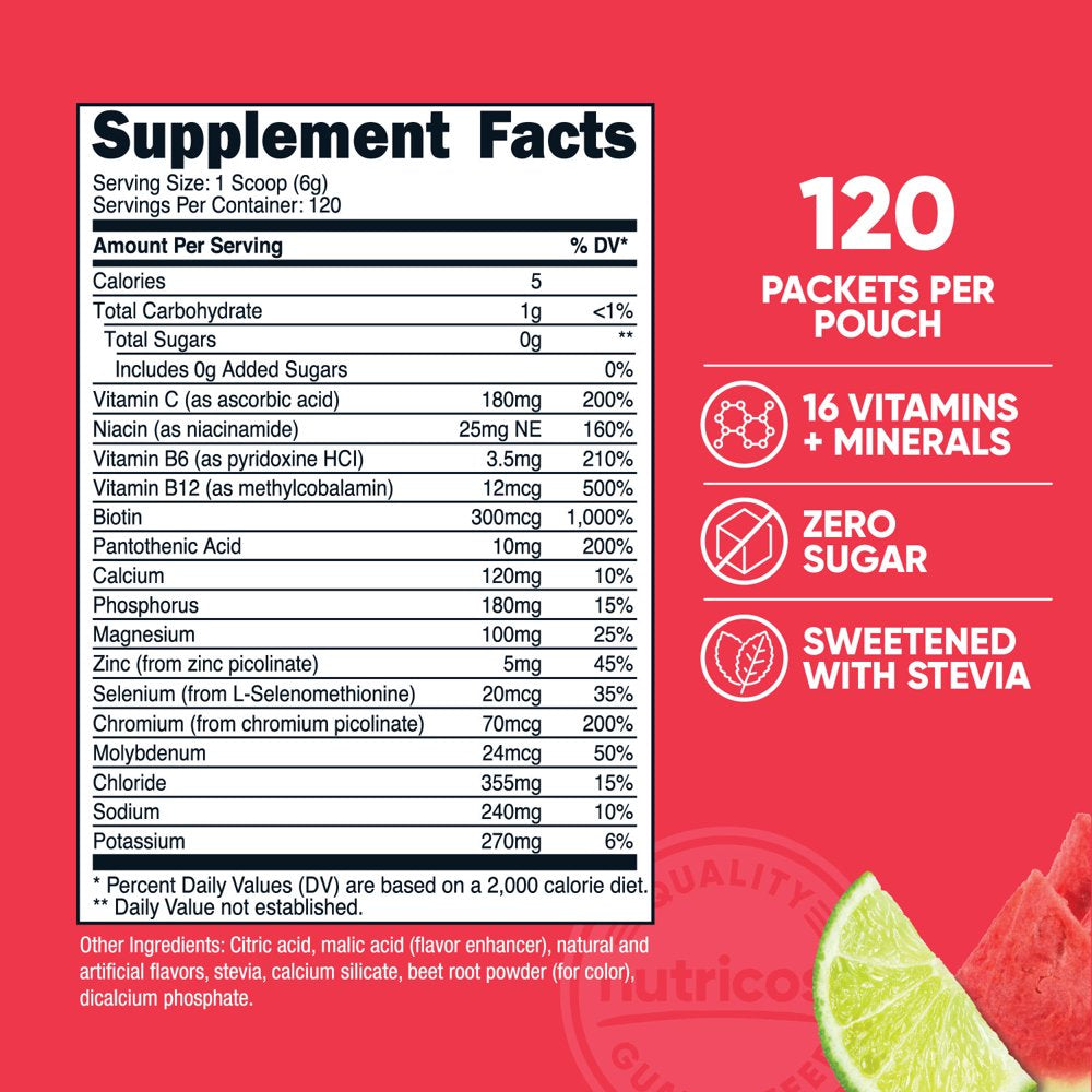 - Nutricost Electrolytes Advanced Hydration Powder Watermelon Lime, Sweetened with Stevia