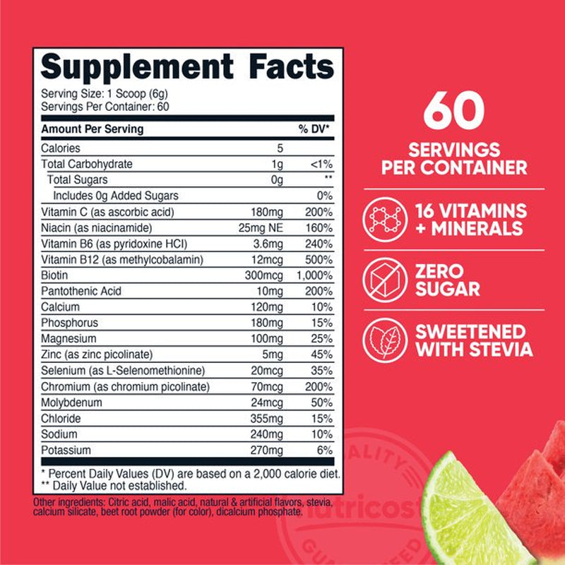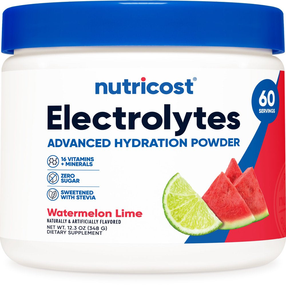 - Nutricost Electrolytes Advanced Hydration Powder Watermelon Lime, Sweetened with Stevia