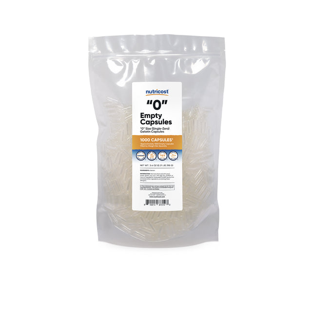 Nutricost Size 0 Empty Capsules provides 1000 clear gelatin capsules. Not manufactured with yeast, wheat, gluten, soy, corn, milk, egg, fish, shellfish, or tree nut ingredients. Produced in a GMP facility that processes other ingredients containing these allergens. Nutricost, located and headquartered in the USA, only uses the best ingredients to ensure maximum quality and to help you feel your best! By keeping our supplement recipes simple and clean, you get the best experience possible with Nutricost. Our supplements are manufactured in a GMP-compliant and FDA-registered facility; and each batch of every product is tested by independent, ISO-accredited laboratories. These statements have not been evaluated by the Food and Drug Administration. This product is not intended to diagnose, treat, cure, or prevent any disease.