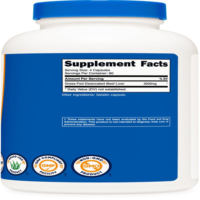 Nutricost's desiccated beef liver is grass-fed, pasture raised, free-range, non-gmo, no-hormones added beef liver from Argentina Cows. Each capsule contains 750mg for a 4 capsule serving of 3000mg. There are 240 capsules per bottle (60 servings). Nutricost, located and headquartered in the USA, only uses the best ingredients to ensure maximum quality and to help you feel your best! By keeping our supplement recipes simple and clean, you get the best experience possible with Nutricost. Our supplements are manufactured in a GMP-compliant and FDA-registered facility; and each batch of every product is tested by independent, ISO-accredited laboratories.