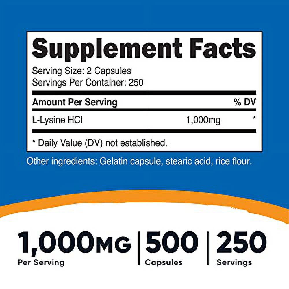 Nutricost L-Lysine 1000Mg per Serving, 250 Servings, 500 Capsules - Gluten Free, Non-Gmo, 500Mg per Capsule is backordered and will ship as soon as it is back in stock.