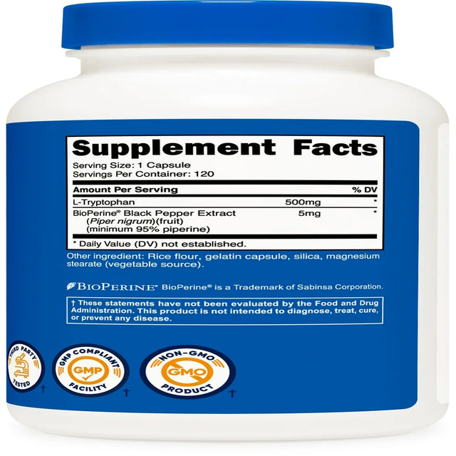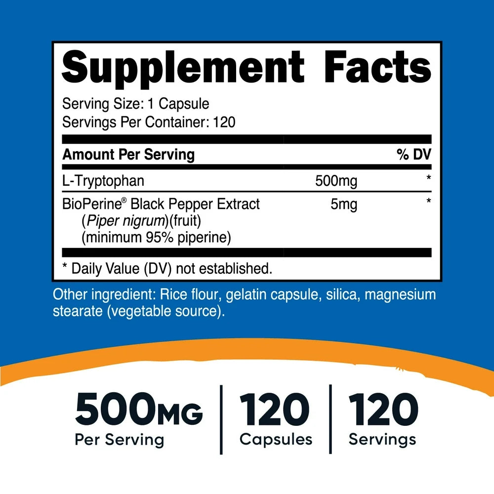 Nutricost L-Tryptophan 500Mg, 120 Capsules, 120 Servings - Health Supplement
