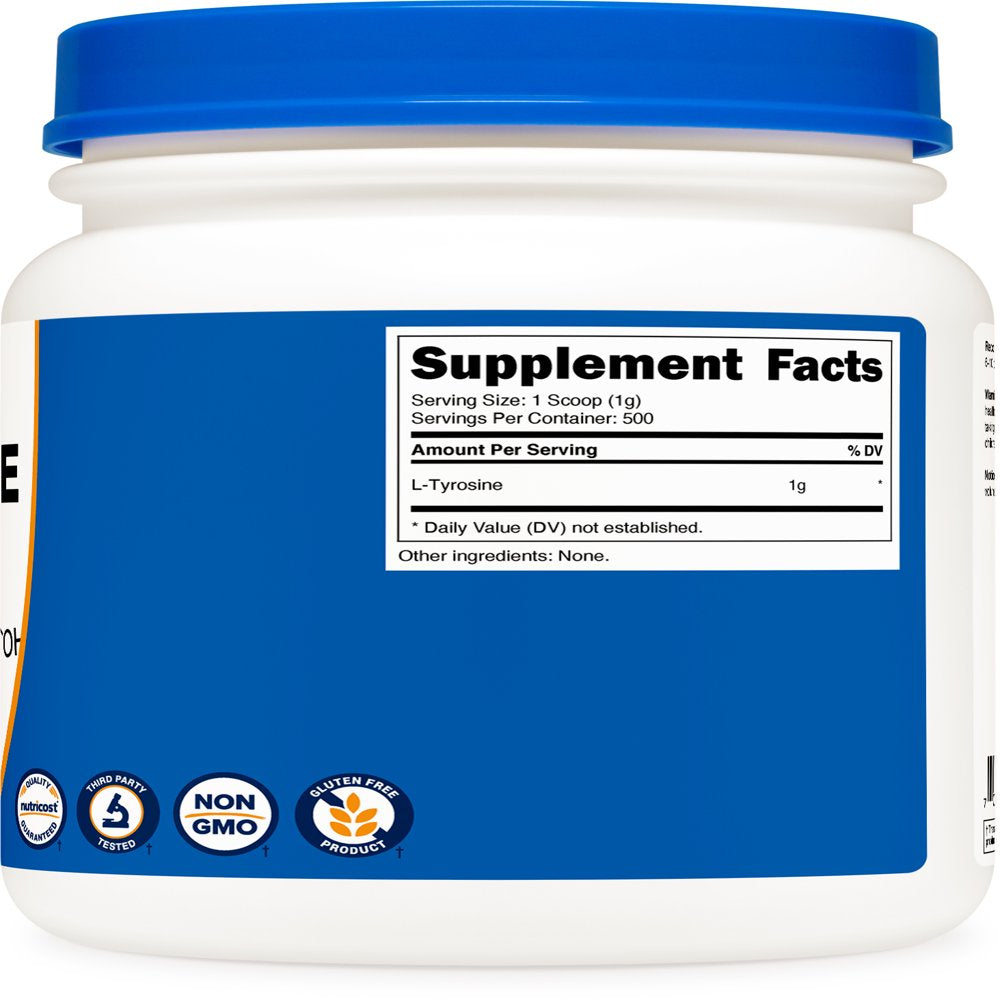 Nutircost's L-Tyrosine is a form of L-Tyrosine. L-Tyrosine is a non-essential amino acid. Each bottle contains 500 grams of unflavored L-Tyrosine powder for 500 servings. This supplement is non-gmo and gluten free. Nutricost, located and headquartered in the USA, only uses the best ingredients to ensure maximum quality and to help you feel your best! By keeping our supplement recipes simple and clean, you get the best experience possible with Nutricost. Our supplements are manufactured in a GMP-compliant and FDA-registered facility; and each batch of every product is tested by independent, ISO-accredited laboratories. These statements have not been evaluated by the Food and Drug Administration. This product is not intended to diagnose, treat, cure, or prevent any disease.