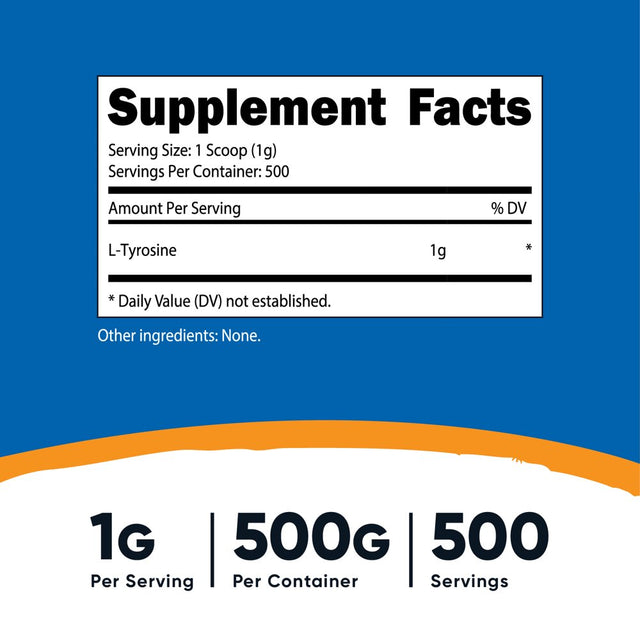 Nutricost L-Tyrosine Supplement Powder 500 Grams - 1000Mg per Serving is backordered and will ship as soon as it is back in stock.
