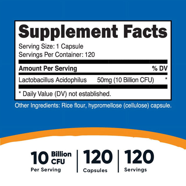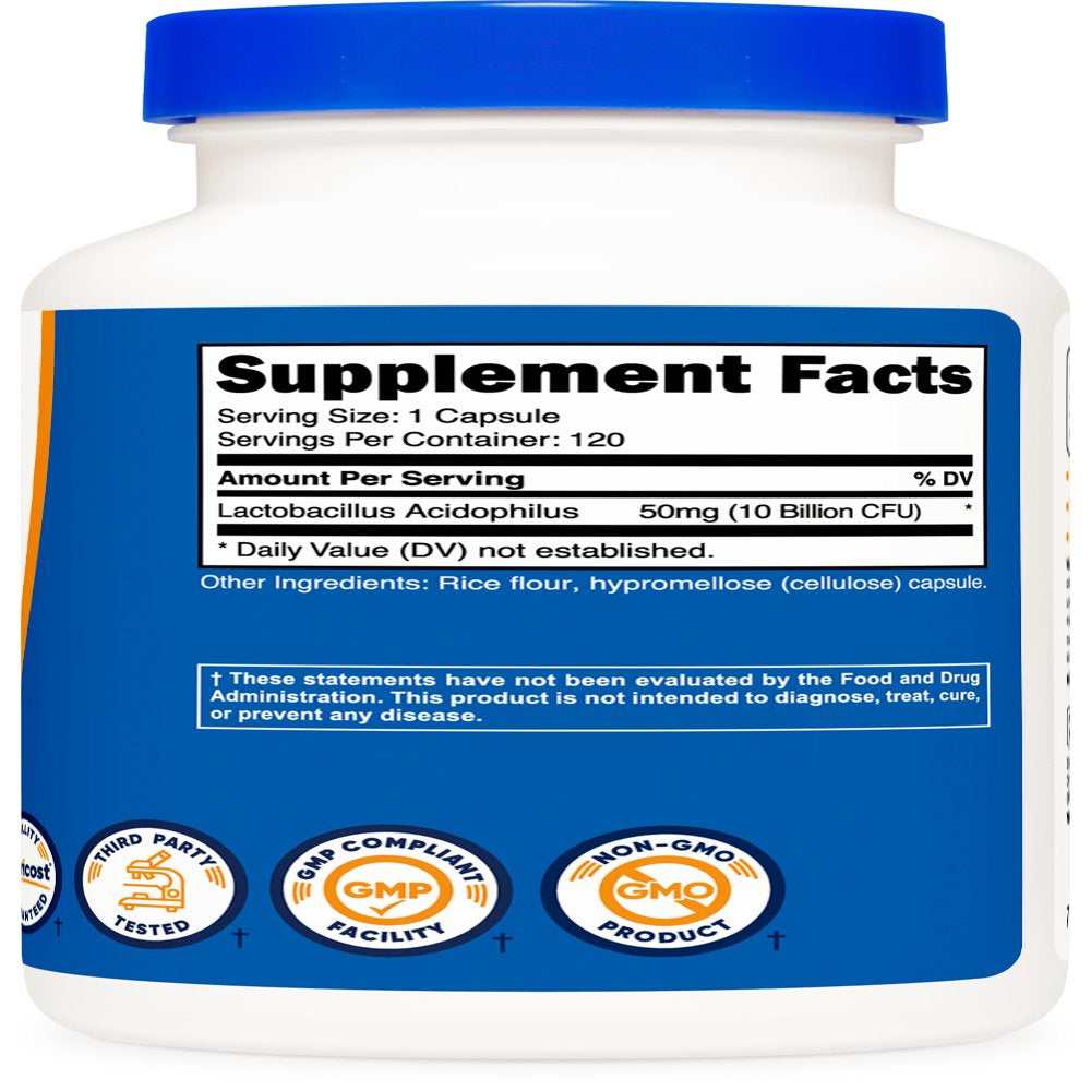 Nutricost Lactobacillus Acidophilus 10 Billion CFU Supplement, 120 Vegetarian Capsules