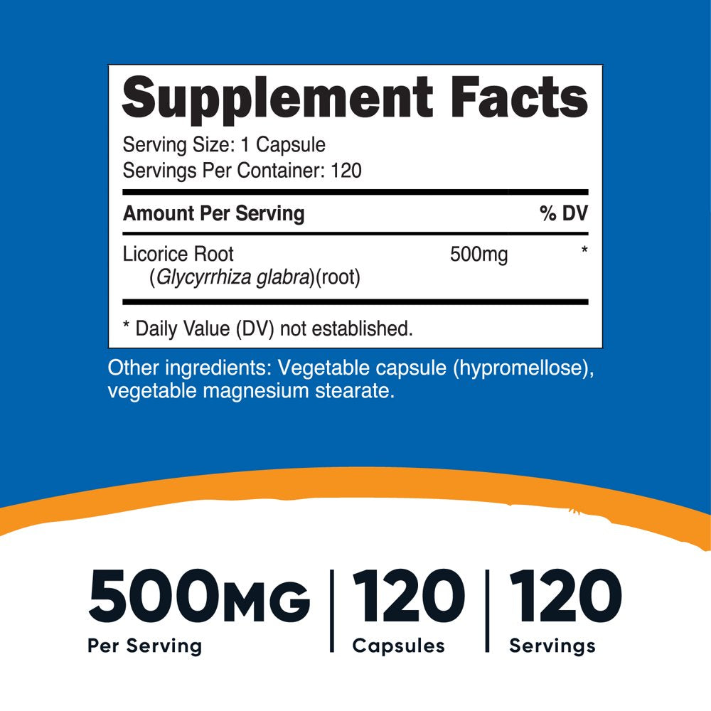 | Product Name | Nutricost Licorice Root 500mg, 120 Capsules - Non-GMO, Gluten Free Herbal Supplement |