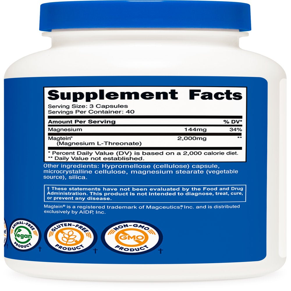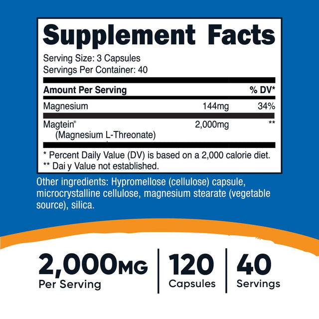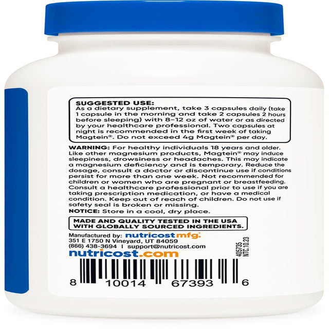 Nutricost Magnesium L-Threonate as Magtein® 2000Mg, 120 Capsules, Supplement is backordered and will ship as soon as it is back in stock.
