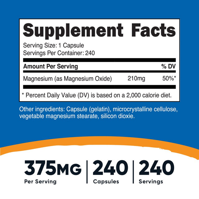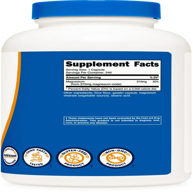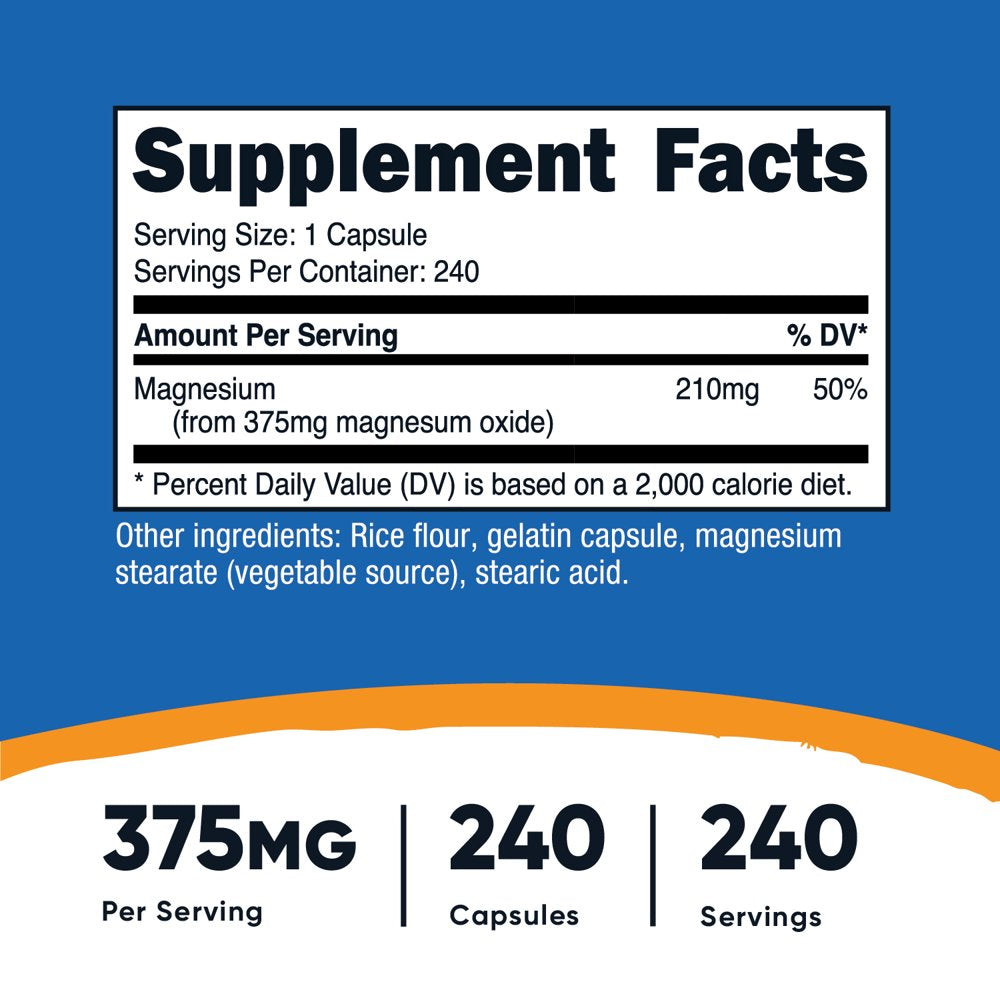 Nutricost Magnesium Oxide Supplement 375Mg, 240 Capsules - 210Mg of Magnesium is backordered and will ship as soon as it is back in stock.