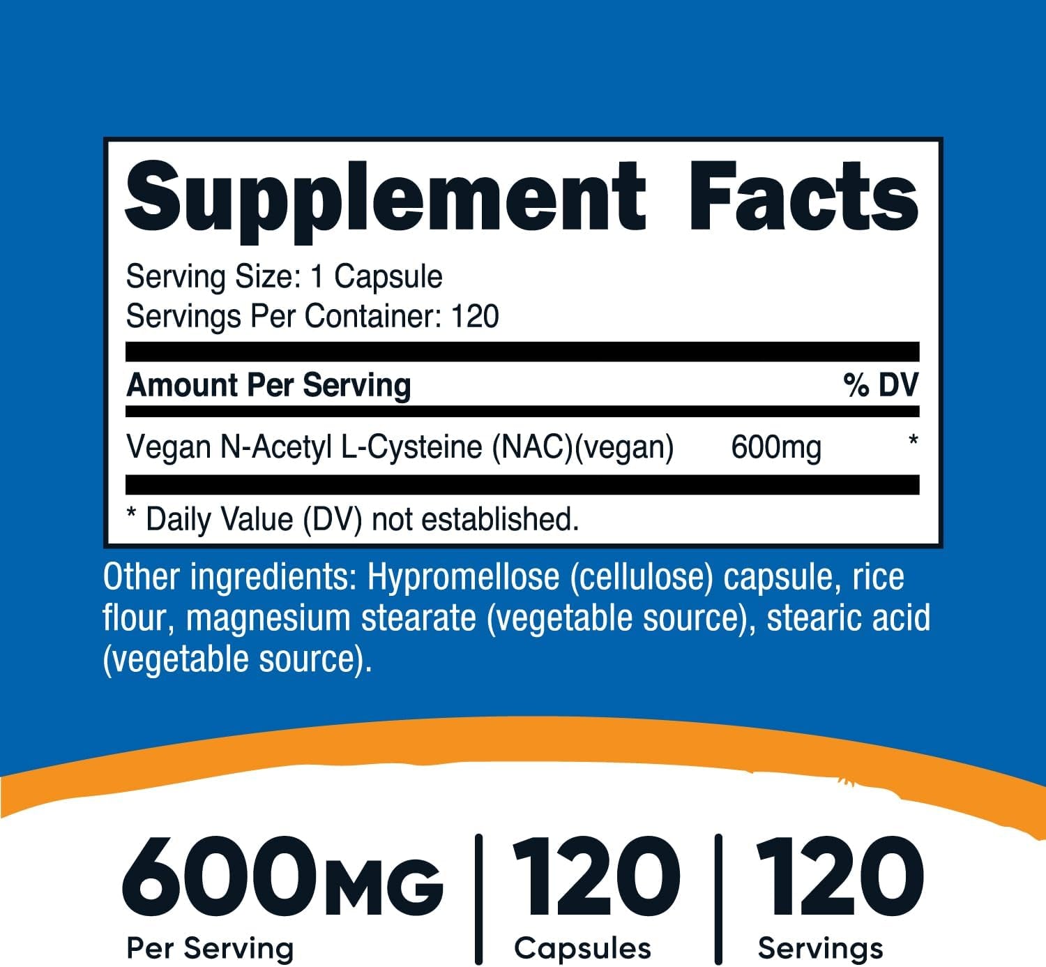 Nutricost N-Acetyl L-Cysteine (NAC) 600Mg, 120 Vegetarian Capsules - Non-Gmo, Gluten Free, Vegetarian Caps