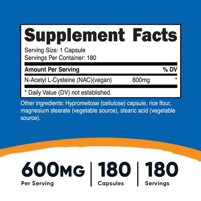 Nutricost N-Acetyl L-Cysteine (NAC) 600Mg, 180 Capsules - Non-Gmo, Gluten Free