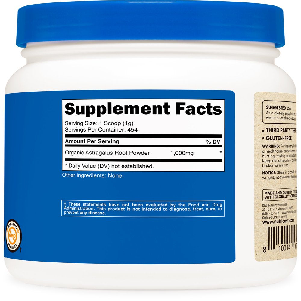 | Product Name | Nutricost Organic Astragalus Root Powder 1LB - Gluten Free, Non-GMO, Vegetarian Supplement |