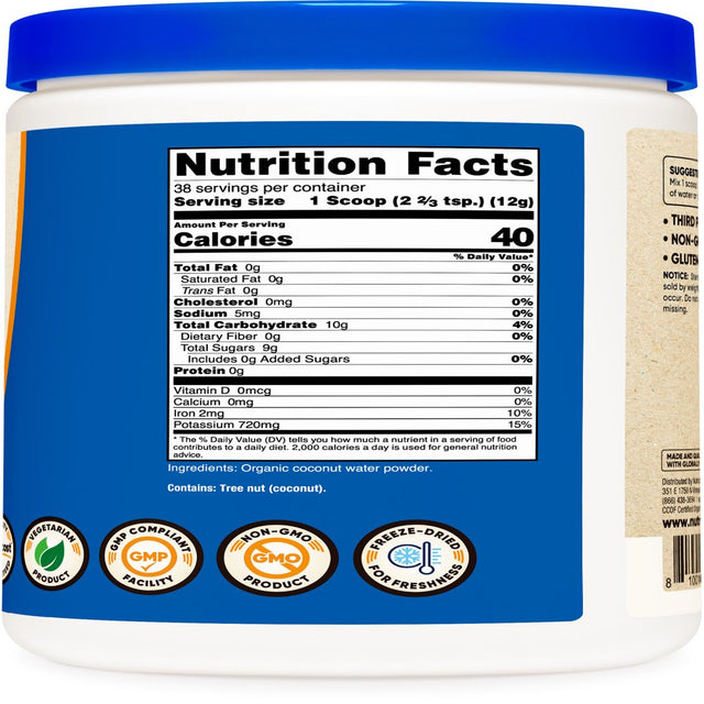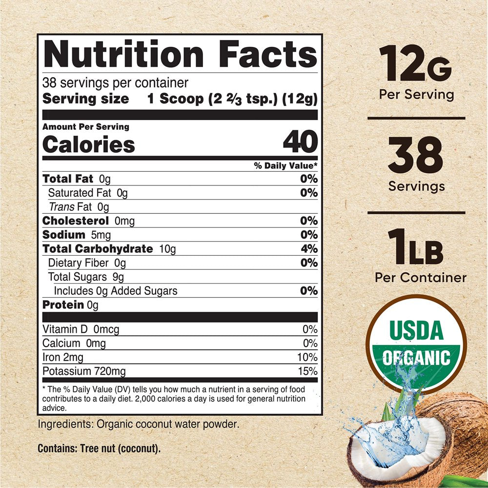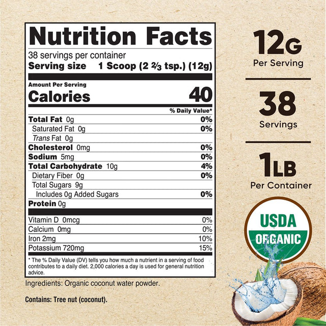 - 38 Servings Per Container and 12g Coconut Water Powder Per Serving