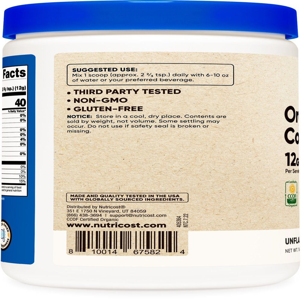Nutricost Organic Coconut Water Powder contains 1 pound (16oz) of pure USDA certified organic coconut water powder for 38 servings. Each bottle contains a convenient serving scoop. Nutricost coconut water is certified organic, non-GMO, gluten free, and soy free. Nutricost, located and headquartered in the USA, only uses the best ingredients for maximum quality and to help you feel your best! By keeping our supplement recipes simple and clean, you get the best experience possible with Nutricost. Our products are manufactured in a GMP-compliant and FDA-registered facility; and each batch of every product is tested by independent, ISO-accredited laboratories.