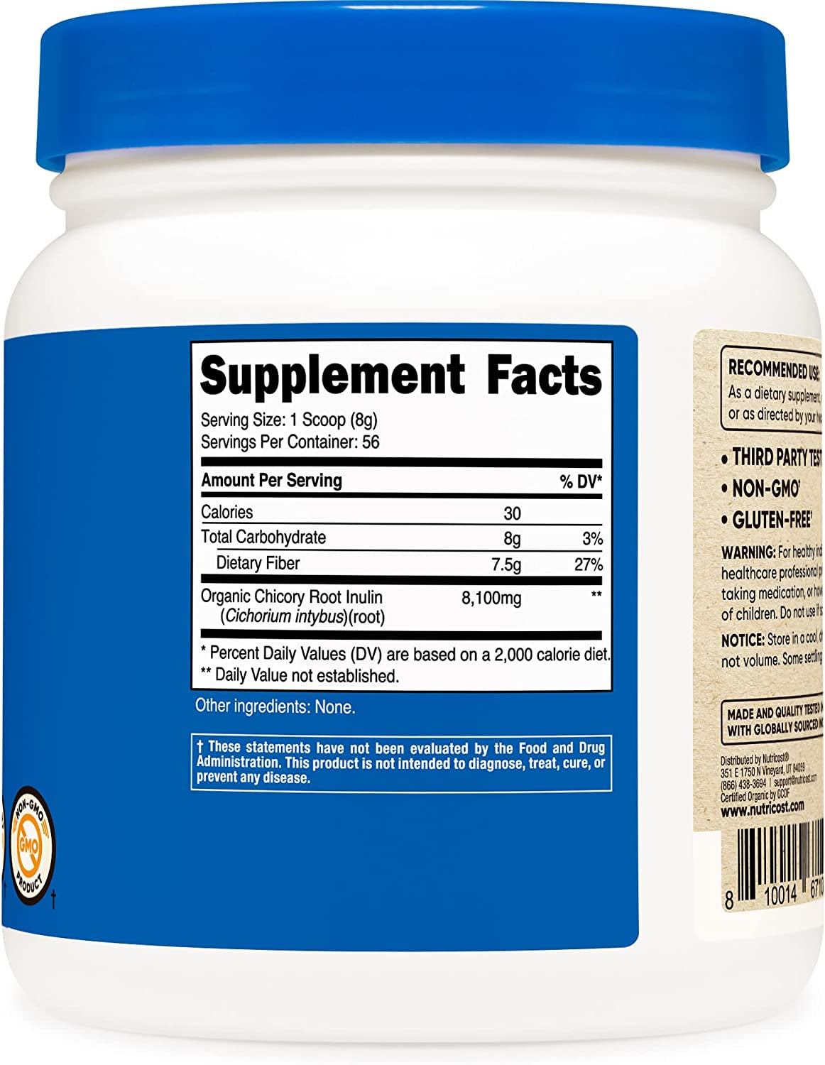 - 1 Pound (454 Grams) of Organic Inulin Powder Per Bottle