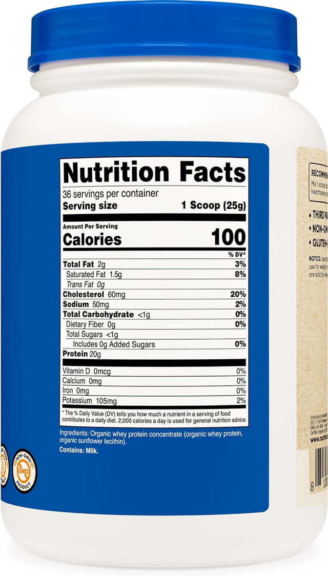 Nutricost Organic Whey Protein Powder (Unflavored) 2 LB - Non-Gmo