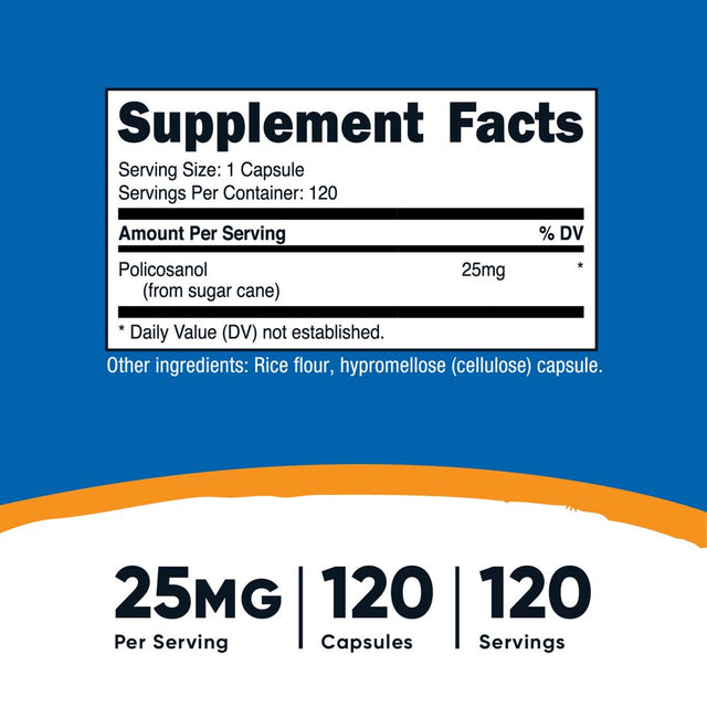 Nutricost Policosanol 25Mg, 120 Capsules - Gluten Free, Non-Gmo Supplement