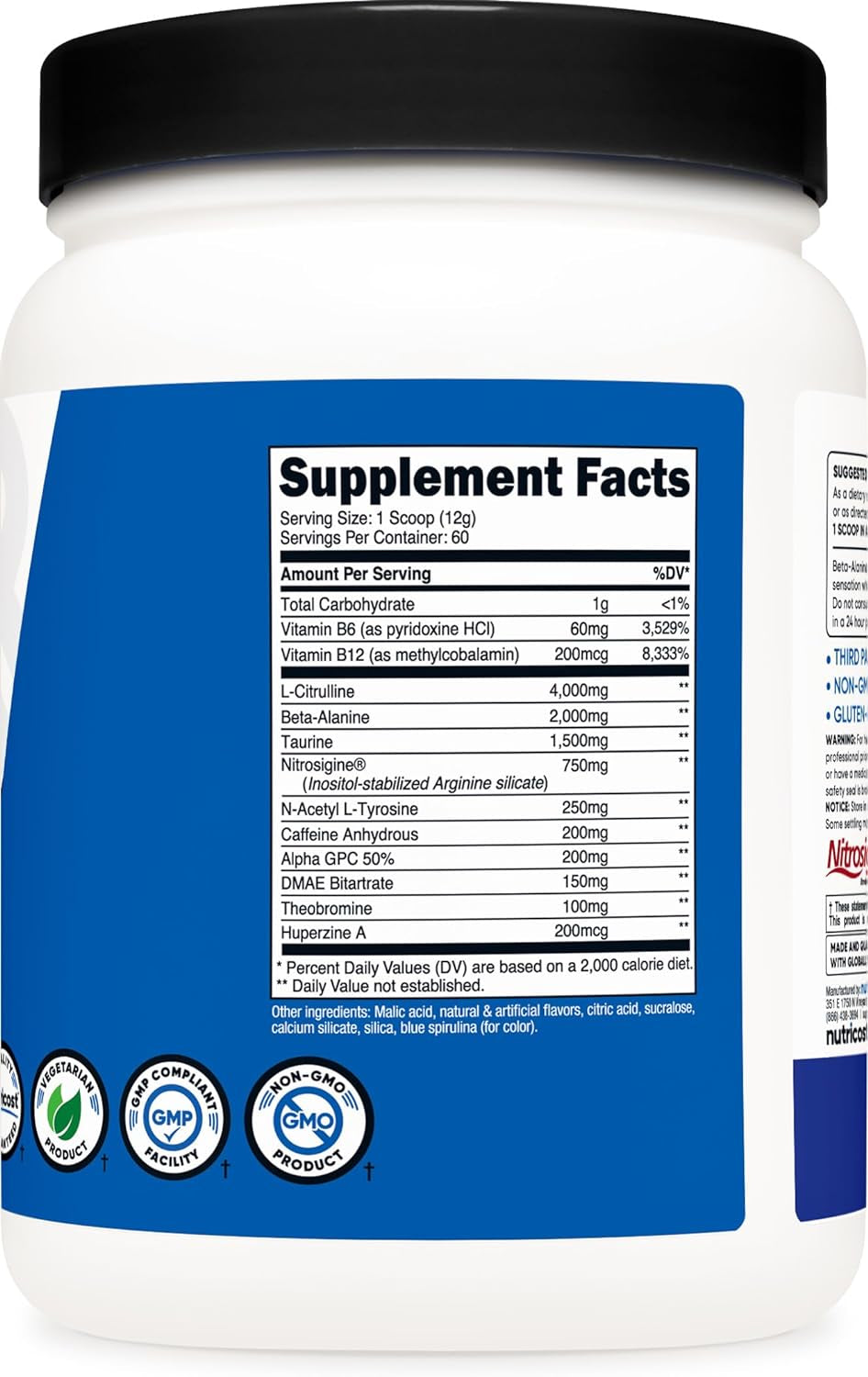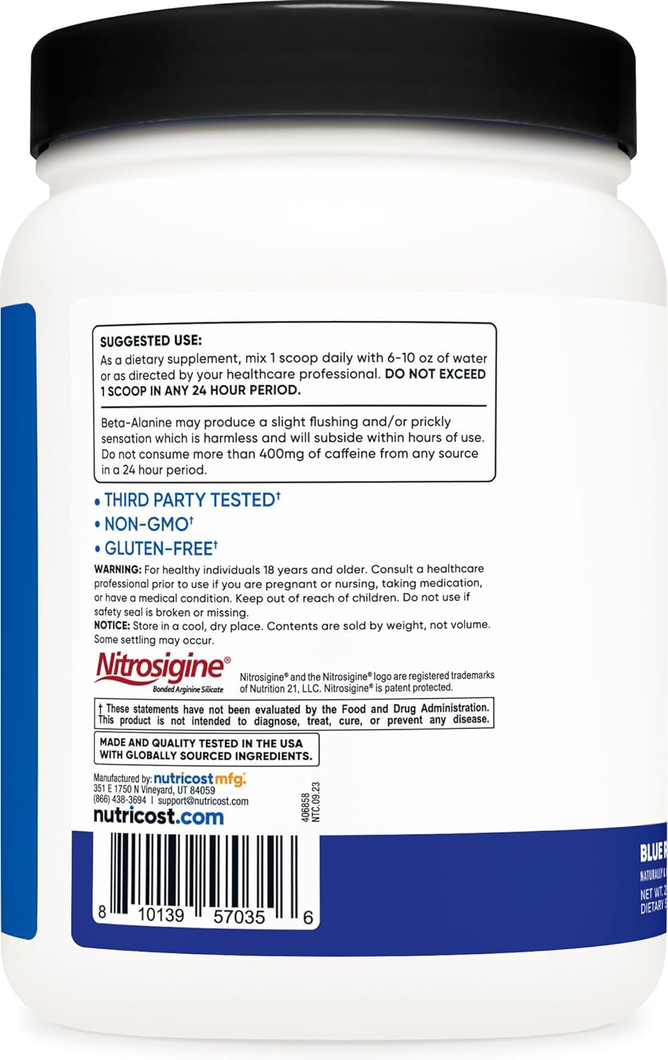 • Quality Assurance: Trust in the quality of every batch produced in an NSF Certified GMP Compliant facility. Nutricost takes pride in delivering a product that meets the highest standards for safety and efficacy, ensuring you get the most out of your pre-workout routine.