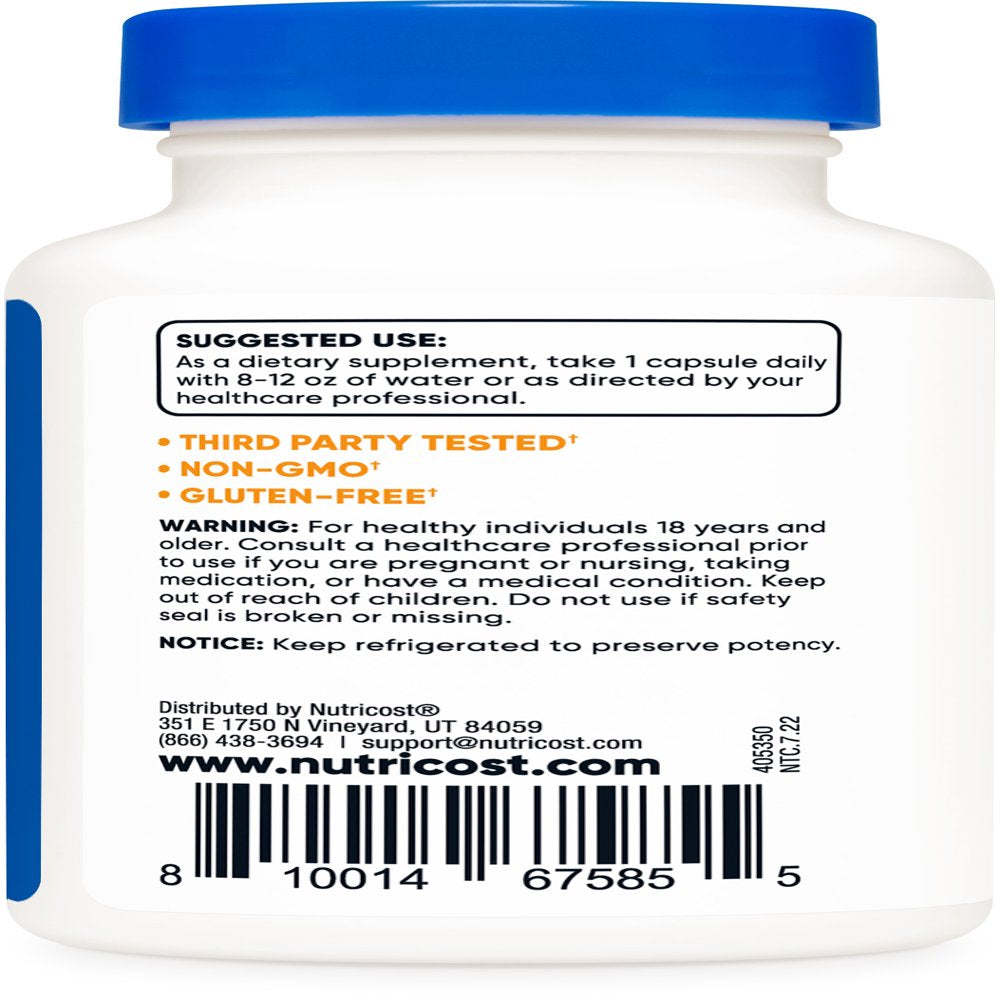 Nutricost's Probiotic Complex contains 10 billion CFU made up of 10 different probiotic strains, including lactobacillus acidophilus, lactobacillus plantarum, lactobacillus rhamnosus, lactococcus, lactis, lactobacillus casei, saccharomyces boulardii, bifidobacterium longum, lactobacillus fermentum, bifidobacterium bifidum, lactobacillus gasseri. Each bottle contains 60 capsules for 60 servings of probiotic complex. Nutricost, located and headquartered in the USA, only uses the best ingredients to ensure maximum quality and to help you feel your best! By keeping our supplement recipes simple and clean, you get the best experience possible with Nutricost. Our supplements are manufactured in a GMP-compliant and FDA-registered facility; and each batch of every product is tested by independent, ISO-accredited laboratories.