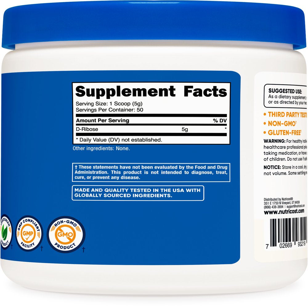 Nutricost Pure D-Ribose Powder (250 Grams) - Non-Gmo Supplement