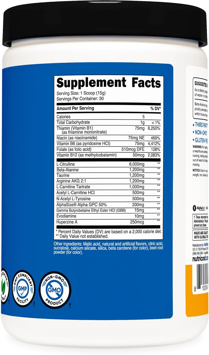 - 6,000mg Of L-Citrulline, 1,200mg Of Beta-Alanine