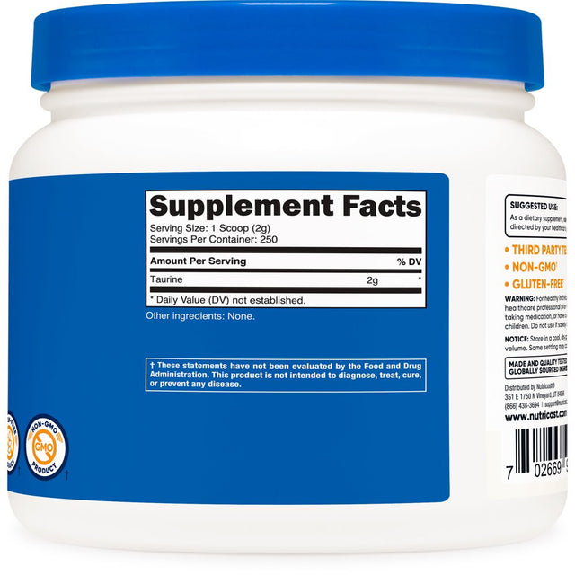 Nutricost Taurine Supplement Powder 500 Grams, 250 Servings is backordered and will ship as soon as it is back in stock.