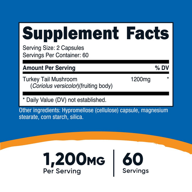 Nutricost Turkey Tail Mushroom Capsules 1200Mg, 60 Servings (120 Capsules) Supplement is backordered and will ship as soon as it is back in stock.