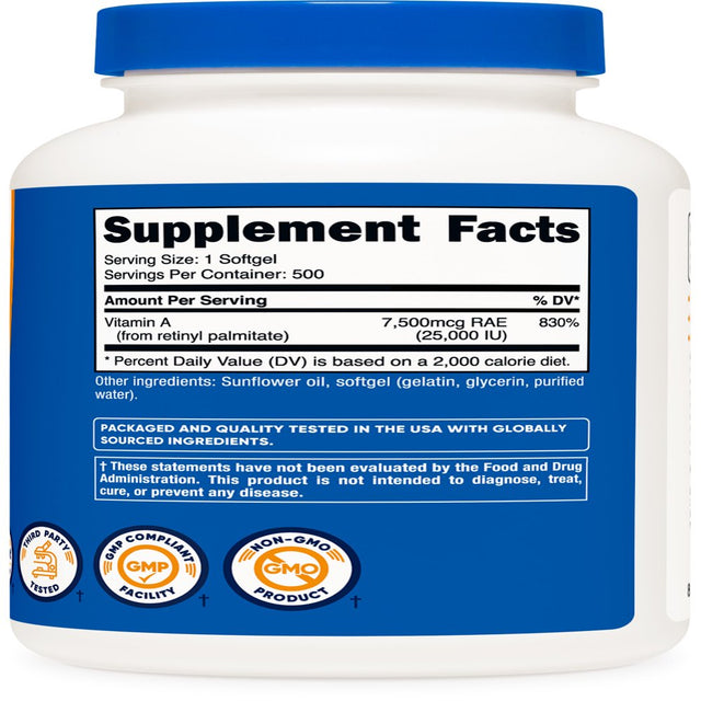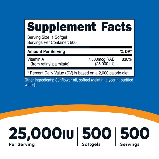 Nutricost Vitamin a 25000 IU, 500 Softgels, Non-Gmo, Gluten Free
