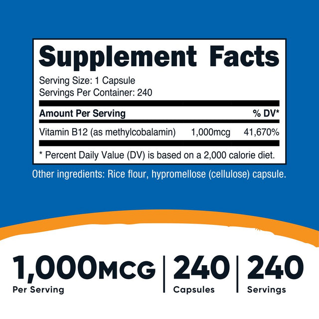 Nutricost Vitamin B12 (Methylcobalamin) 1000Mcg, 240 Capsules - Non-Gmo, Gluten Free