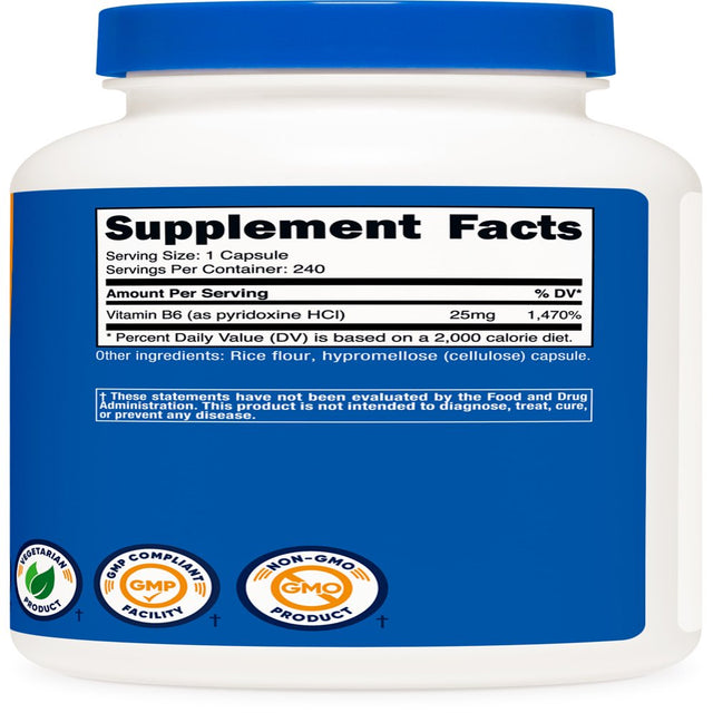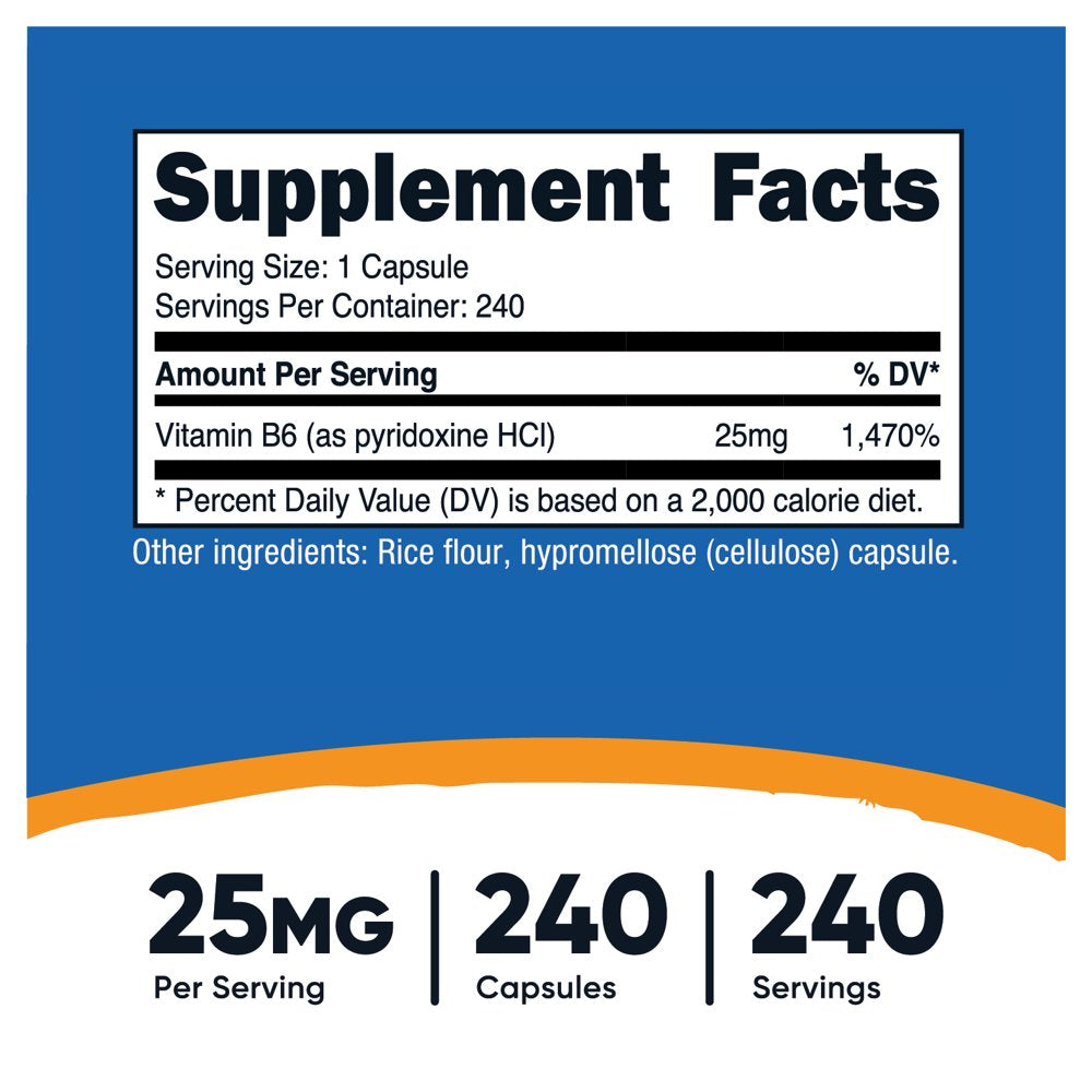 Nutricost Vitamin B6 (Pyridoxine Hcl) 25Mg, 240 Capsules, Supplement is backordered and will ship as soon as it is back in stock.