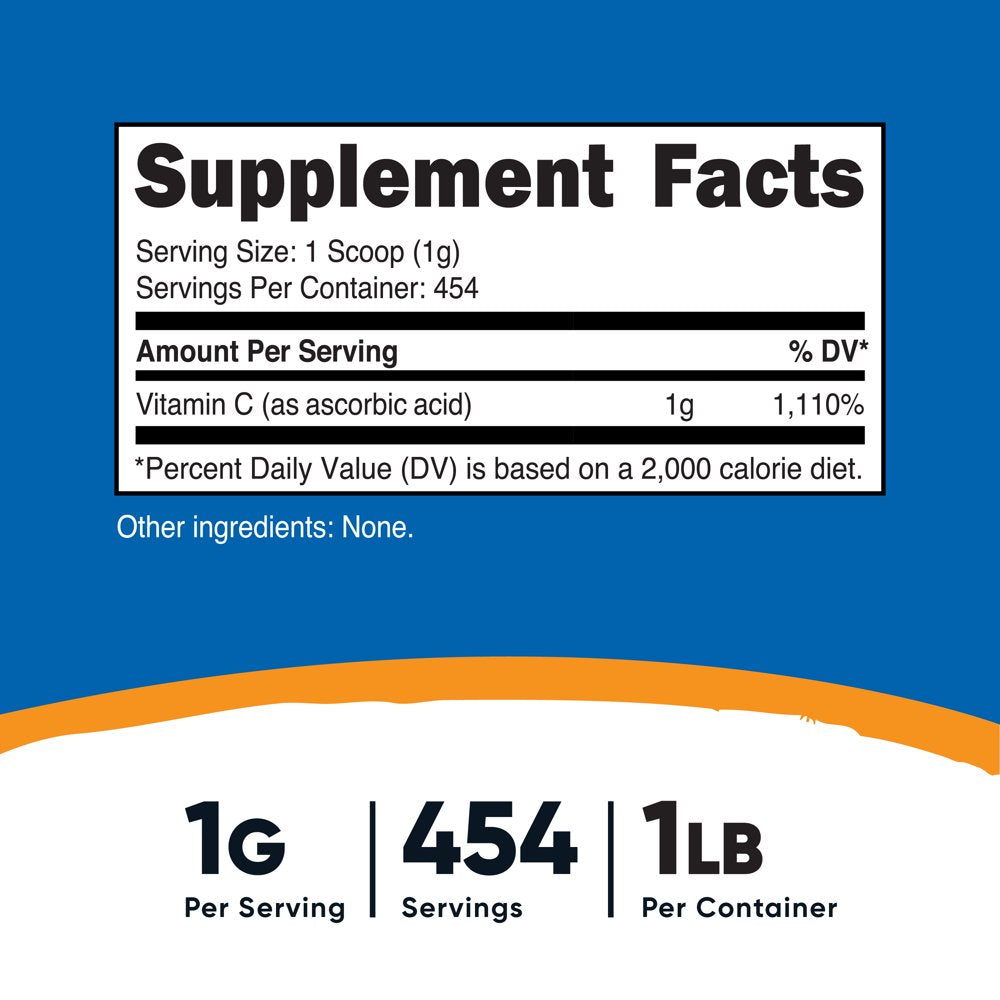 - 454 Servings of Ascorbic Acid (Vitamin C) Powder