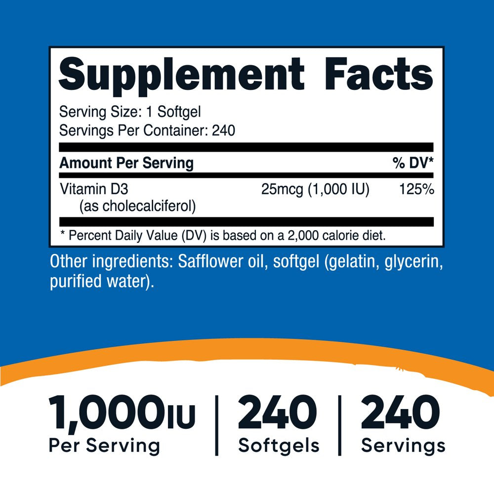 Nutricost Vitamin D3 1000Iu Softgels, 240 Softgels, Non-Gmo & Gluten Free Supplement