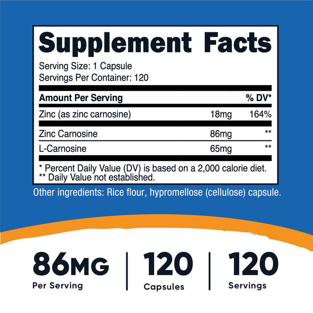 Nutricost Zinc Carnosine 86Mg, 120 Capsules - Non-Gmo, Gluten Free Supplement