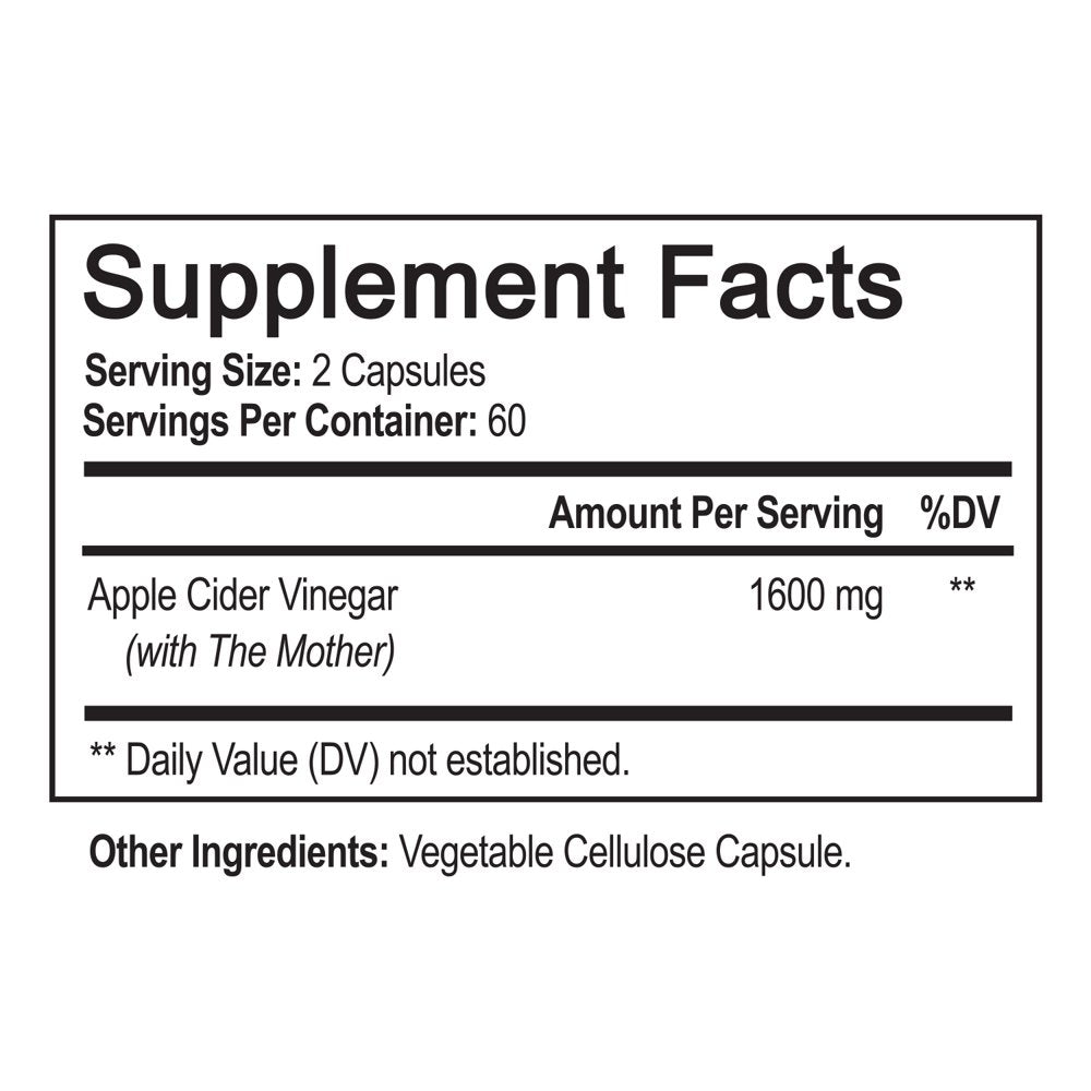 - Vegan, non-GMO apple cider vinegar capsules