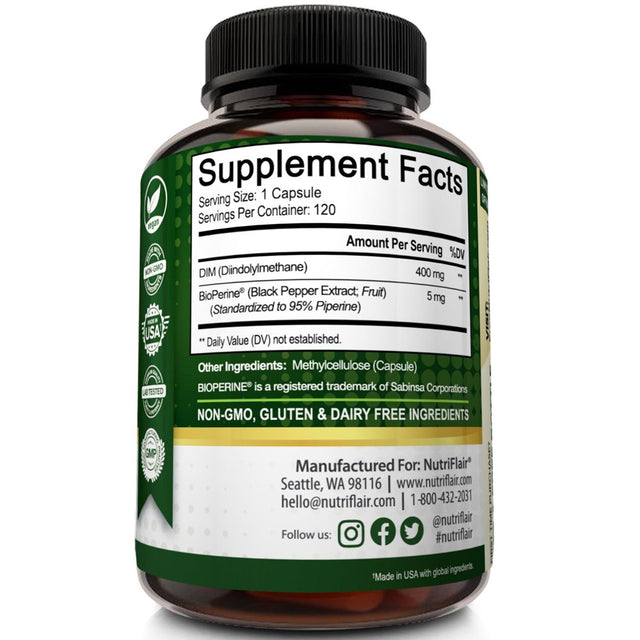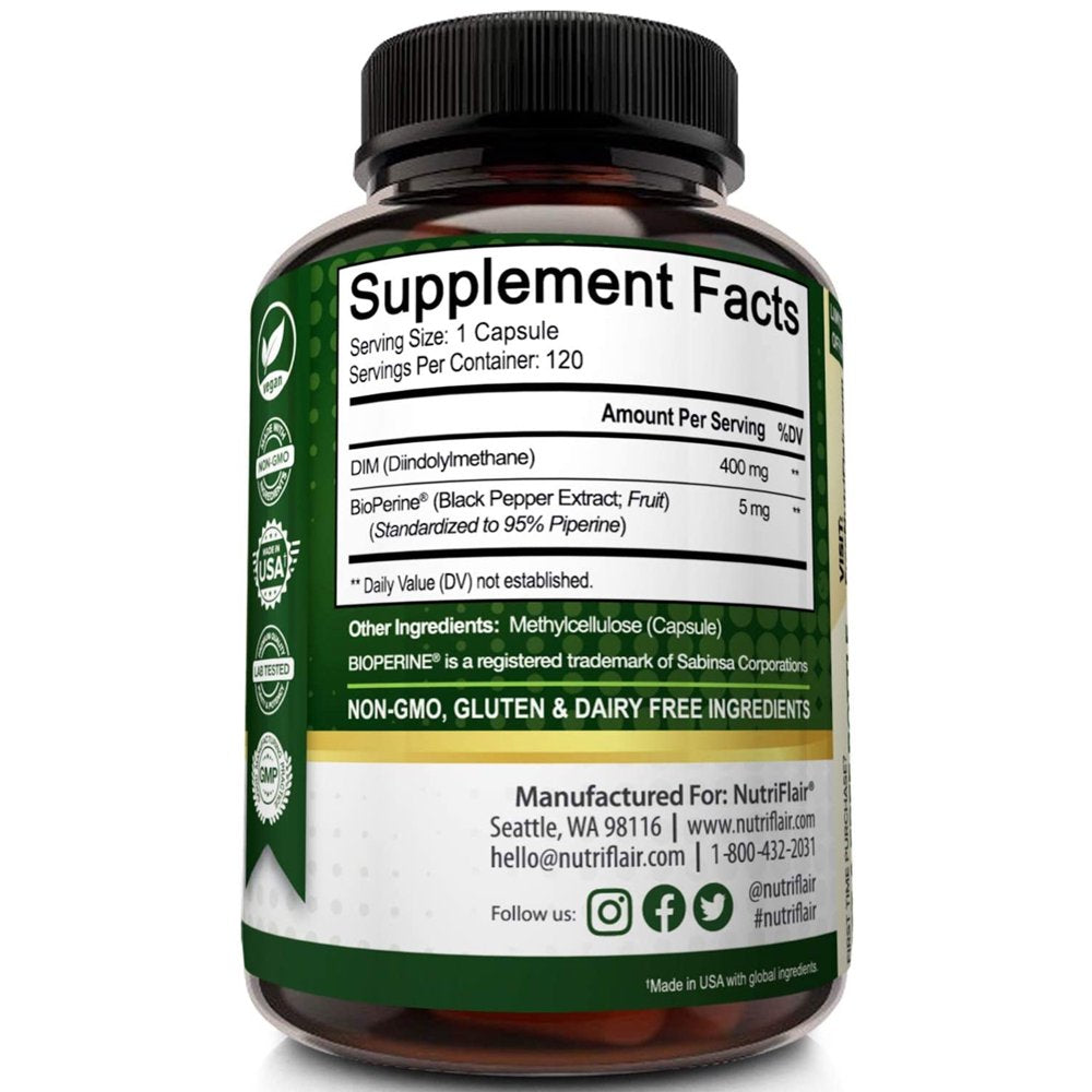 Nutriflair DIM Supplement Hormonal Balance Supplements for Women and Men 120 Vegetable Capsules