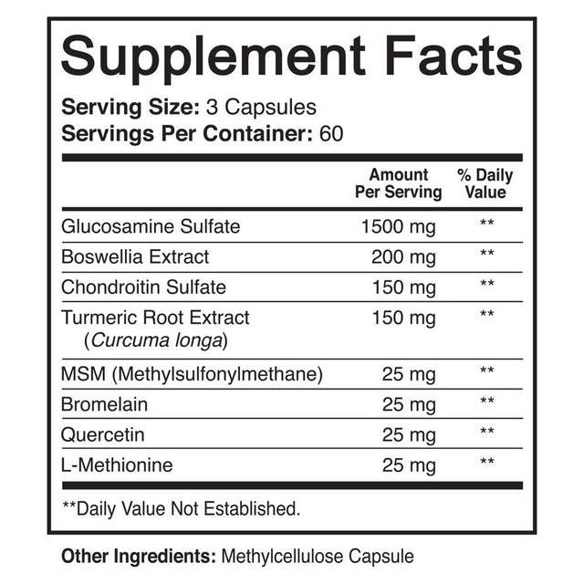 Glucosamine, Chondroitin, Turmeric, MSM, Boswellia, and other ingredients, helps in joint support. Common Names: This product is often referred to, or mis-spelled as: glucosimine, glucsamin, glucosamin, glicosamina glucosamina chondriton condroitan guclosamine glocosamin gucosamine glucoamine cosamine glucousimine glocosamina glucosamin gloucosamin glucosomine chondroitina condroitin condroitina chrondroitin condrotin chodroitin chondrotine chondroition condroiten chondoitin chondroitan condroiton chondritin chondroiton tumeric turmeric