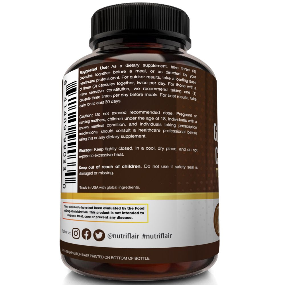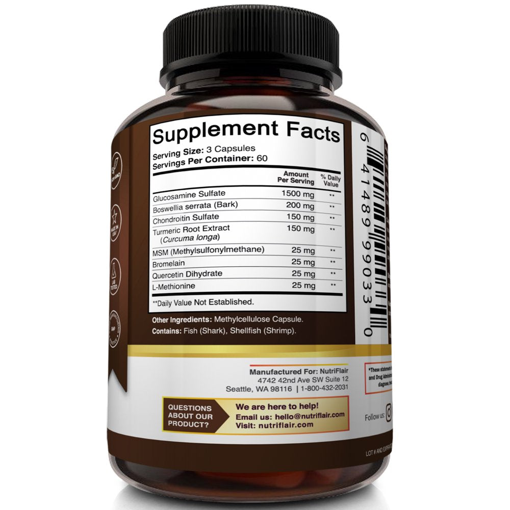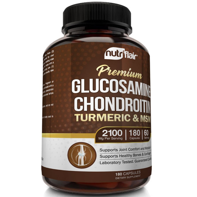Nutriflair Glucosamine Chondroitin Turmeric MSM Boswellia Supplement, 180 Capsules - Natural & Non-Gmo - Antioxidant Pills - for Back, Knees, Hands, Joints, Cartilage