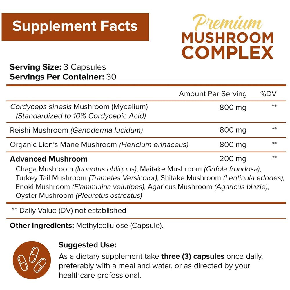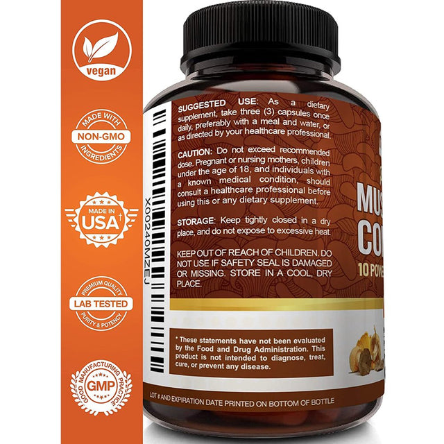 - Non-GMO, vegan, gluten-free mushroom complex supplement