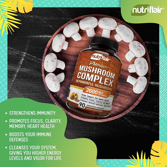 Nutriflair Mushroom Complex Supplement with Lion'S Mane Cordyceps 90 Vegetable Capsules