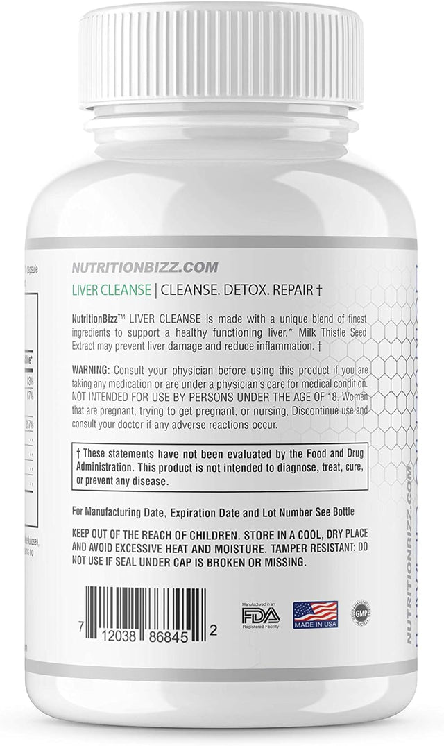 NutritionBizz Liver Cleanse Detox | Cleanse | Repair 60 Capsules
