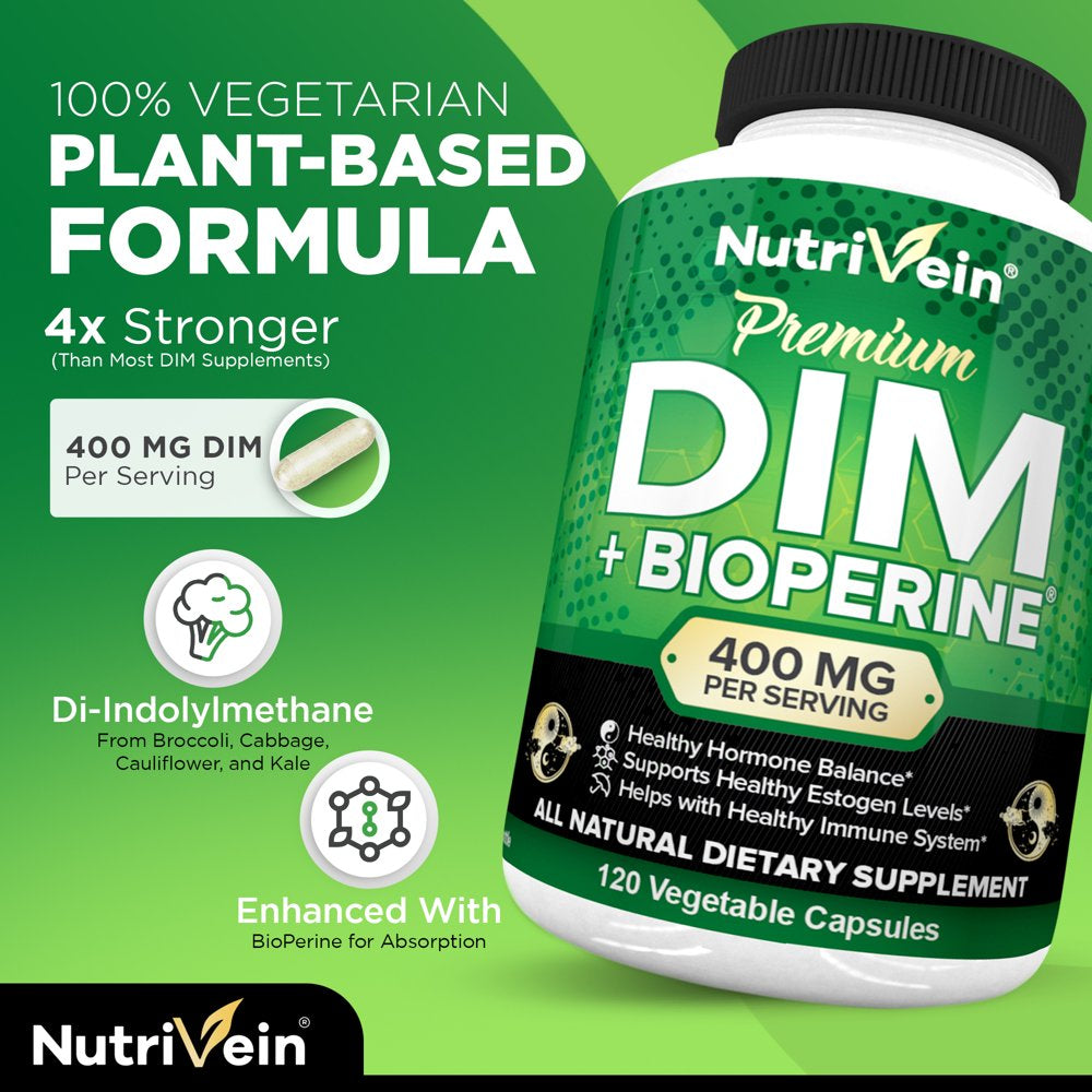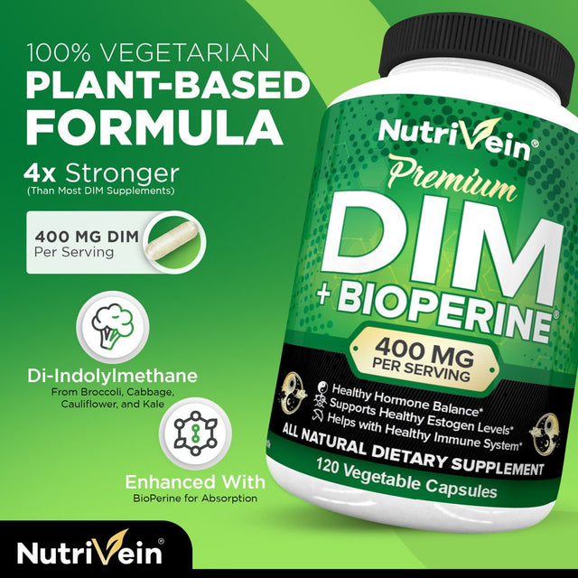 Nutrivein DIM Supplement 400Mg – 120 Capsules - Supports Acne Treatment for Men & Women