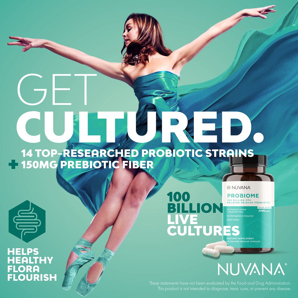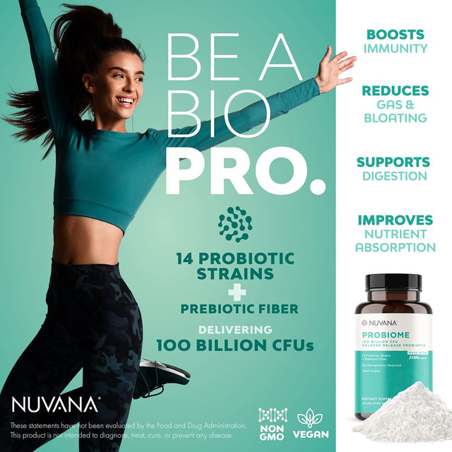 Nuvana Probiome | 100 Billion CFU | 14 Probiotic Strains with Prebiotic Fiber for Adult Men & Women